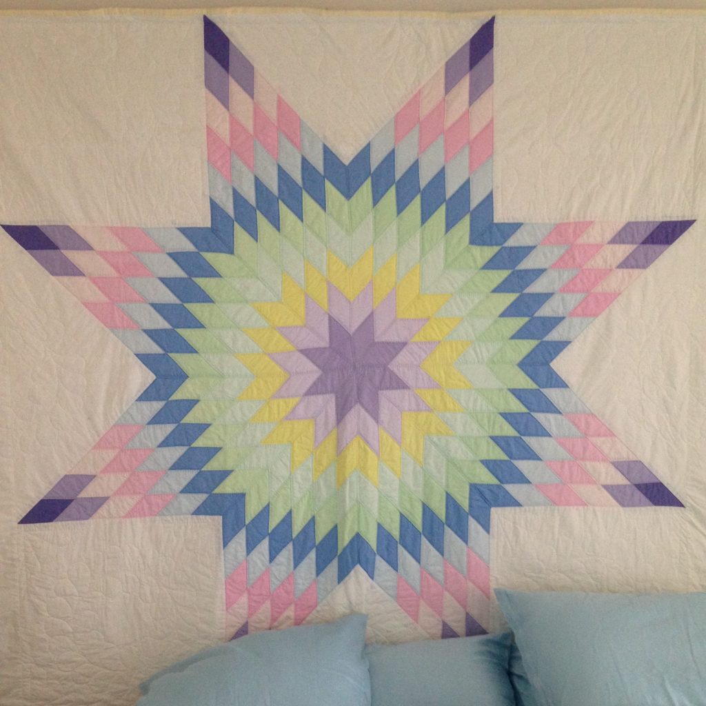 Lonely Star, eine Bettdecke, hier als Wandbehang.Die Sterne lassen mich nicht los, dieser Quilt ist in Arbeit und da ich ihn von Hand quilte wird es wohl noch ein paar Wochen dauern, bis er fertig ist.