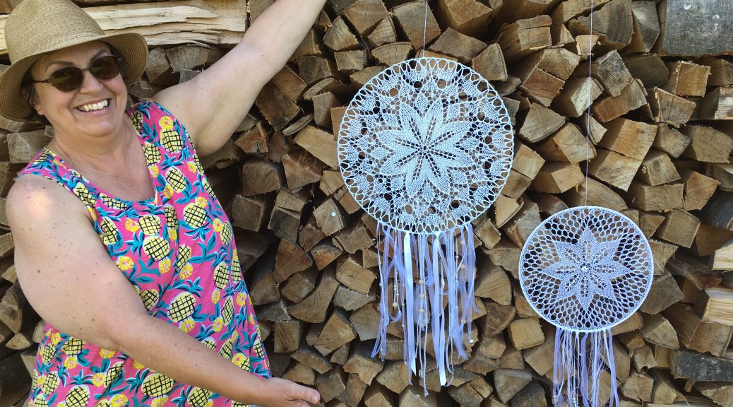 Die ersten Traumfänger sind fertig! es werden noch weitere folgen, in den nächsten Tagen. Sobald ich meine Stoffrosen und Papierblumen gefunden habe…. wird es blumig werden. Wer mich kennt, weiss, sehr blumig. Traumfänger sind sehr persönliche Geschenke. Zur Hochzeit, zur Geburt, Geburtstag und zu vielen anderen schönen Momenten, an die man sich gerne Erinnert. Sie können mit weiteren Geschenken ergänzt werden….. Verlobungsring, Gutschein, Geld, Backförmli, Samenbriefchen und vieles Anderes mehr. Diese Traumfänger sind 30-40 cm im Durchmesser. Gestrickt oder gehäkelt…