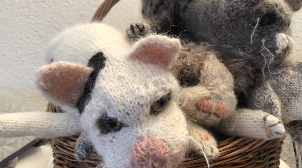 wir haben neue Haustiere…. als ich diese süssen Kätzchen auf Pinterest (Claire Garland) entdeckt habe, war ich hin und weg😍 und sofort habe ich begonnen, alle Katzen die zur Familie gehörten nach zu stricken. Foxi, Herr Lehmann, Charlie und Mira.