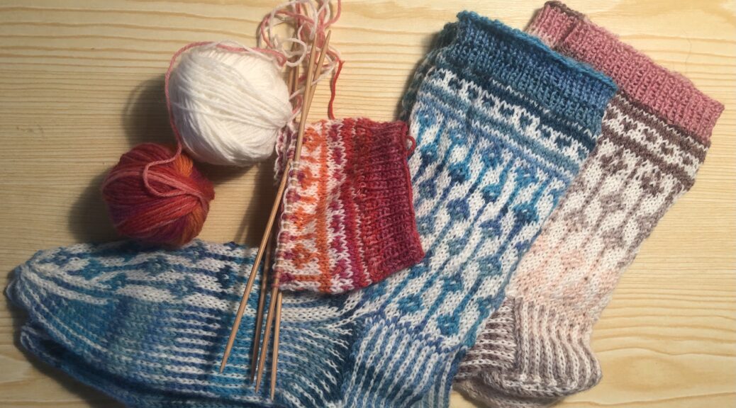 „Liebe auf den ersten Blick“ das Muster hat mir sofort gefallen, Wolle gesucht, Mustersocken gestrickt und mit der Originalwolle nochmals in Blaugrün. Jetzt folgt noch ein Modell, das in den Ferien fertig gestellt wird 🤩🏖🌞